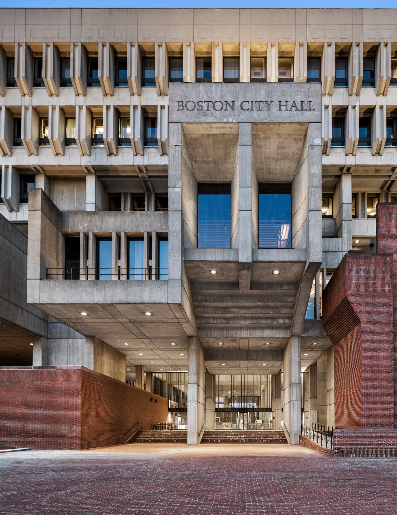 Kallmann, McKinnell & Knowles tarafından tasarlanan bu belediye binası, işlevselliği ve kamu hizmetini ön planda tutar.